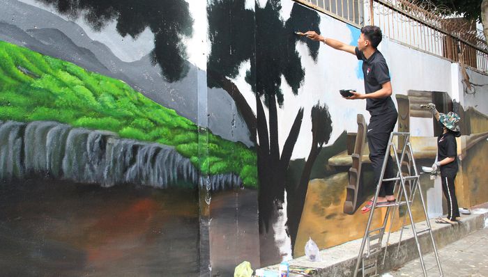 Thi công Phố bích họa ở Đường sách cà phê Buôn Ma Thuột-. Ảnh minh họa