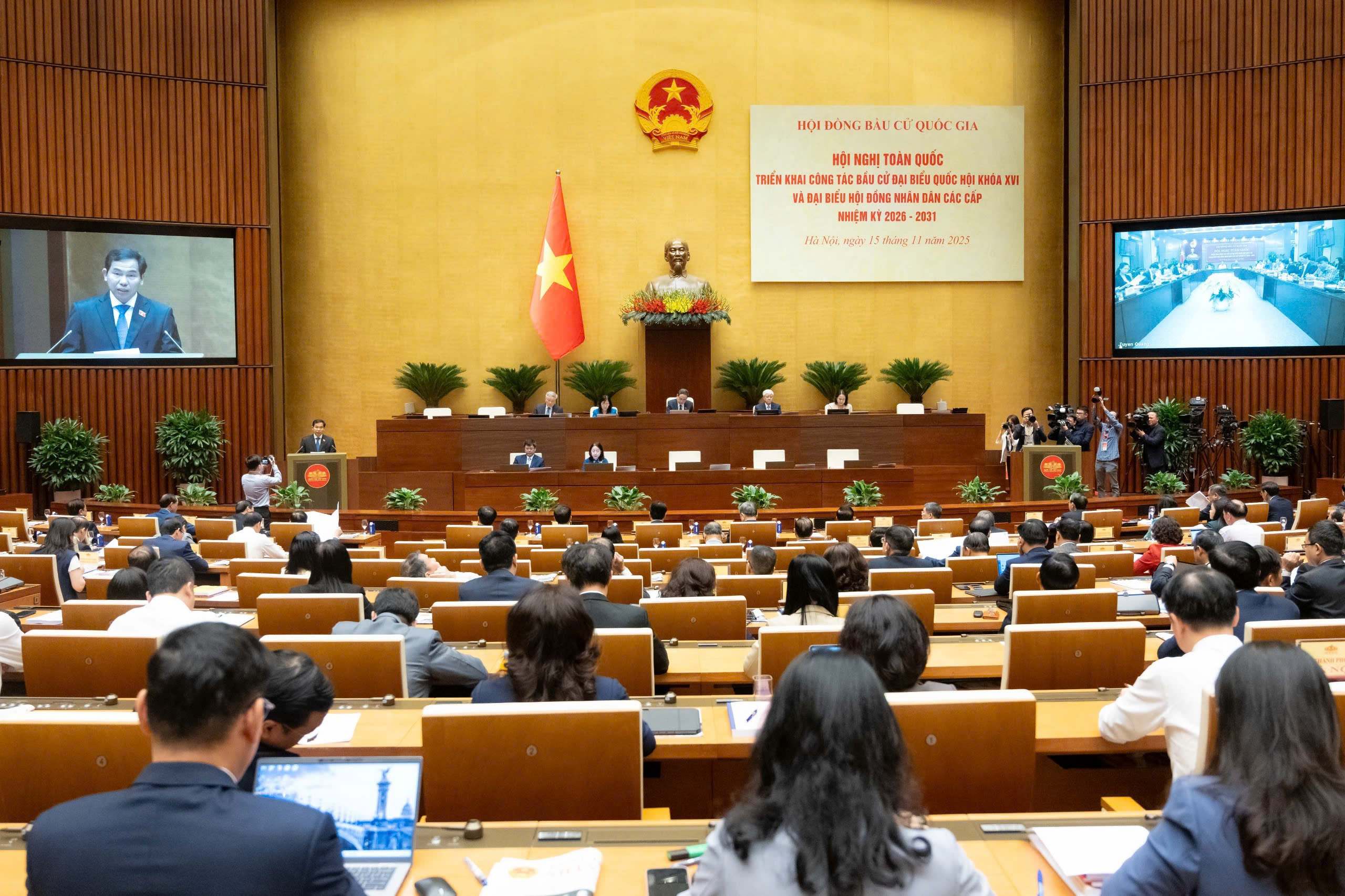 Trình bày tóm tắt Kế hoạch số 62 ngày 11/11/2025 của Hội đồng bầu cử quốc gia về việc triển khai công tác bầu cử đại biểu Quốc hội khóa XVI và đại biểu Hội đồng nhân dân các cấp nhiệm kỳ 2026-2031, Tổng Thư ký Quốc hội, Chủ nhiệm Văn phòng Quốc hội, Ủy viên Hội đồng bầu cử quốc gia, Chánh Văn phòng Hội đồng bầu cử quốc gia Lê Quang Mạnh cho biết, cuộc bầu cử đại biểu Quốc hội khóa XVI và đại biểu Hội đồng nhân dân các cấp nhiệm kỳ 2026-2031 được tổ chức vào Chủ nhật, ngày 15/3/2026, trong bối cảnh toàn Đảng, toàn dân và toàn quân ta tổ chức triển khai thực hiện Nghị quyết Đại hội đại biểu toàn quốc lần thứ XIV của Đảng, nhằm tiếp tục xây dựng, củng cố và hoàn thiện Nhà nước pháp quyền xã hội chủ nghĩa của Nhân dân, do Nhân dân và vì Nhân dân.