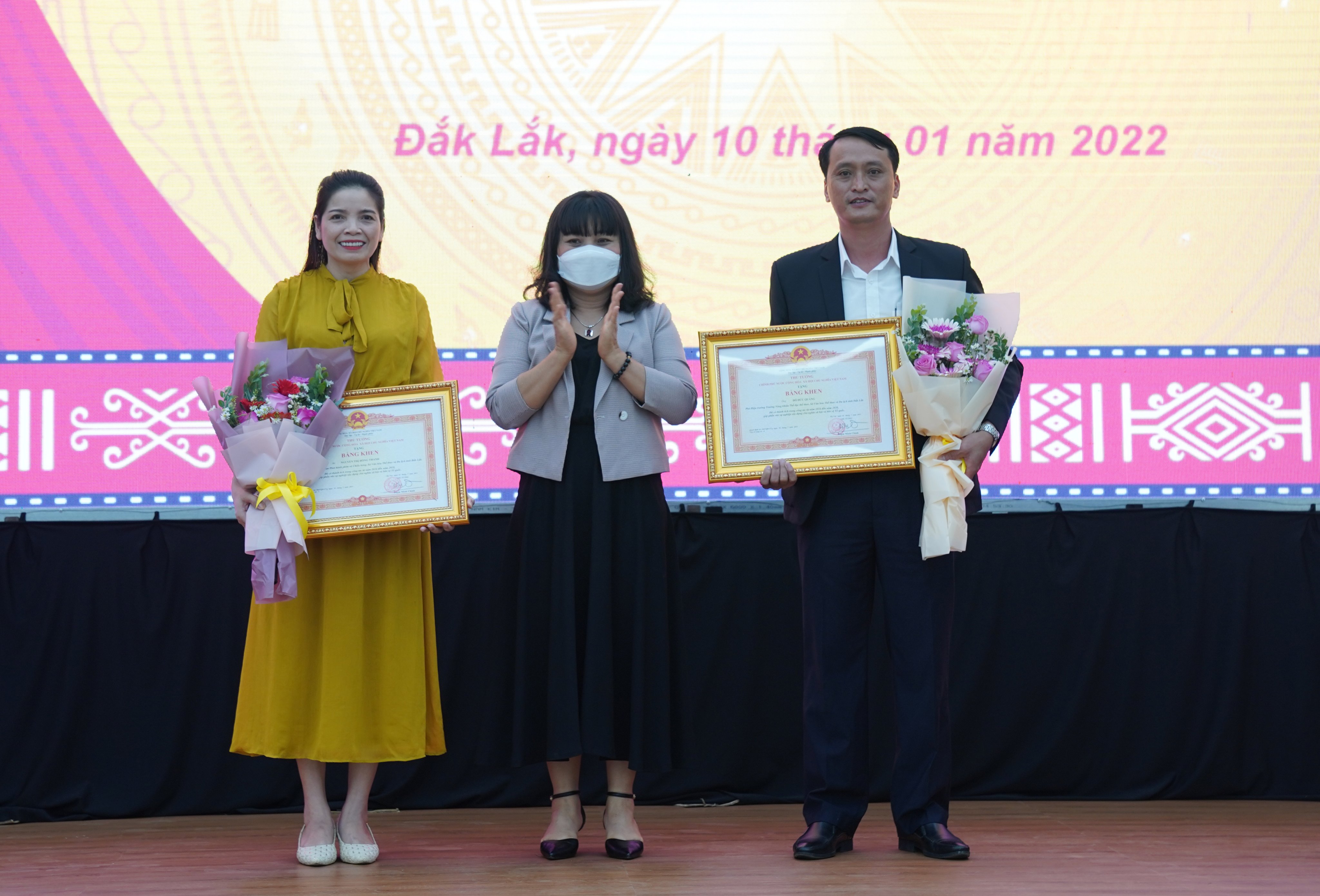 Bà H'Yim Kđoh - Tỉnh ủy viên, Phó Chủ tịch UBND tỉnh tặng Bằng khen của Thủ tướng Chỉnh phủ cho các cá nhân đã có thành tích trong công tác từ năm 2016 – 2020.