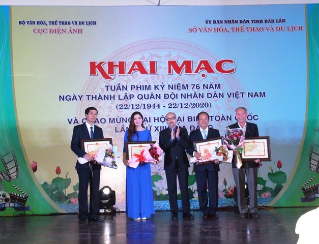 Tối 19/12, tại Trung tâm Văn hóa Điện ảnh đa chức năng vùng Tây Nguyên, tỉnh Đắk Lắk, Cục Điện ảnh - Bộ Văn hóa, Thể thao và Du lịch phối hợp với Sở Văn hóa, Thể thao và Du lịch tổ chức khai mạc“Tuần phim Kỷ niệm 76 năm Ngày thành lập Quân đội nhân dân Việt Nam (22/12/1944 - 22/12/2020) và chào mừng Đại hội đại biểu toàn quốc lần thứ XIII của Đảng.